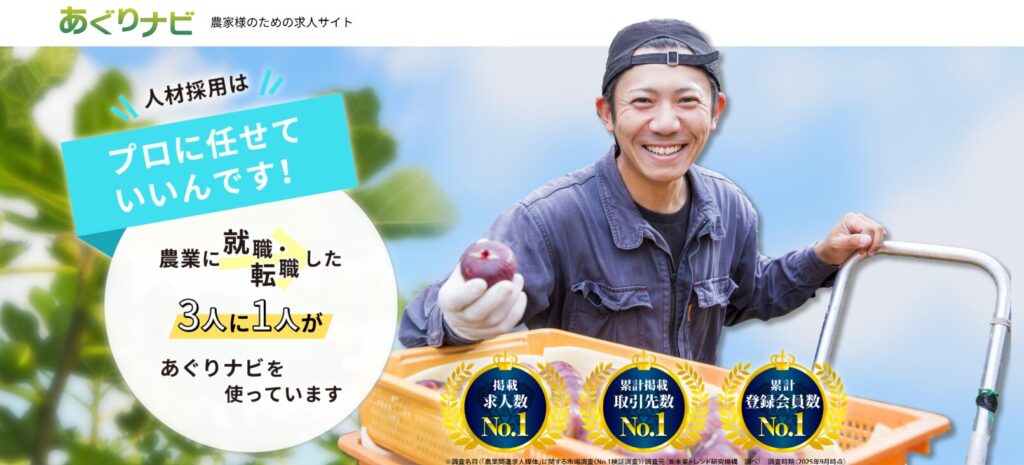 こちらも農業専門ですが、あぐりなびに比べると求人数は絞られる印象です。